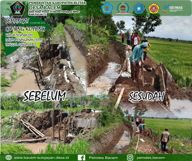 Berita Desa Berita TaniKERJA BHAKTI PENANGGULANGAN SUNGAI JEBOL DUSUN BACEMpemdesUpdated on January 15, 2024January 15, 2024